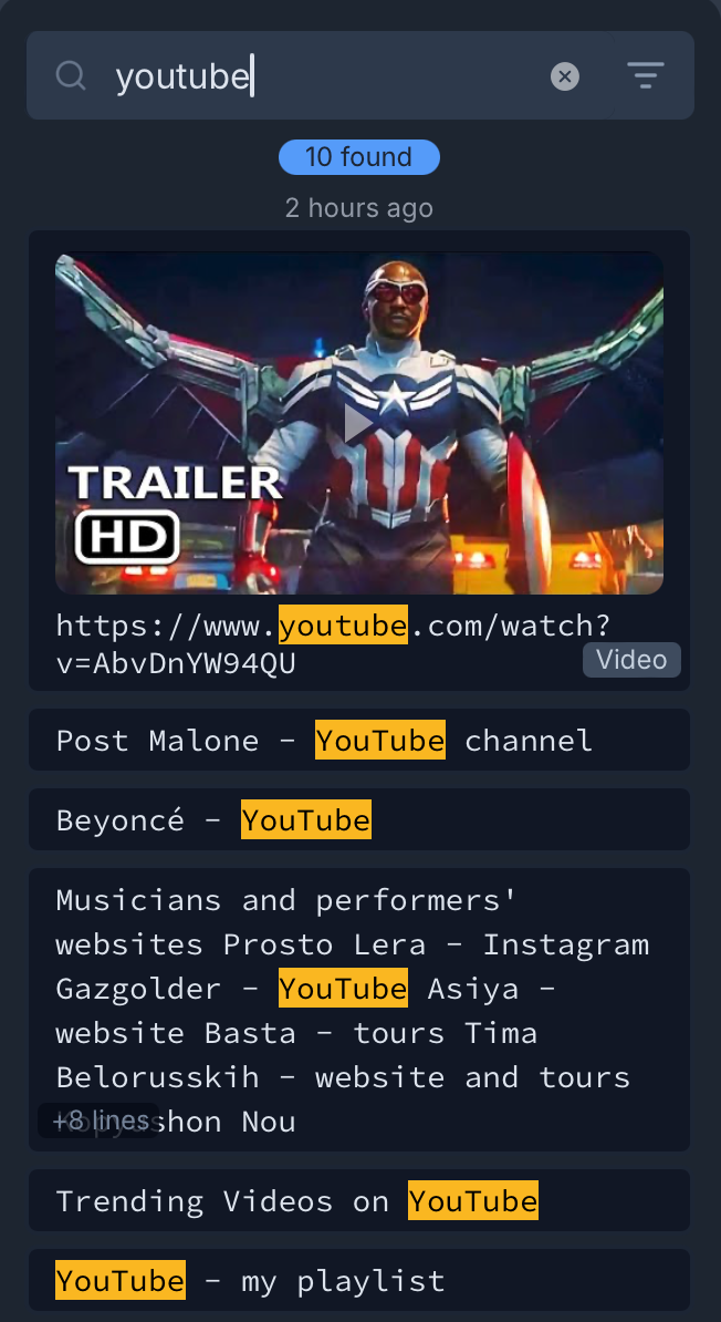 Enjoy unlimited clipboard history, saved custom clips, and quick-access paste menus. Organize and track everything you copy and paste using collections, tabs, and boards. With modern interface and intuitive features ensure easy access to your copy history and your most important content — all in one place. Privately and securely stored on your local device.